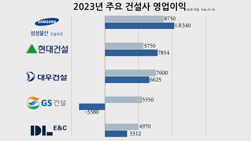 2023년 주요 건설사 영업이익. (자료=각 사, 그래픽=뷰어스)