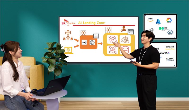 SK C&C는 3일 기업이 보유한 클라우드 환경에 맞춰 빠르고 편리하게 생성형 AI를 연동하고 AI 서비스를 전개할 수 있도록 지원하는 ‘AI 랜딩존 서비스’를 제공한다고 밝혔다.