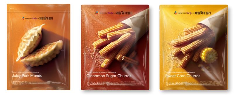 ‘육즙+왕교자’는 기존 왕교자의 장점인 만두소의 꽉 찬 식감에 고기 함량을 늘려 육즙이 풍부해진 것이 특징이다. 또한 만두피에 쌀가루를 더해 찌면 쫄깃하고 구우면 바삭하게 즐길 수 있다. 별 모양 틀로 짜낸 ‘츄러스’는 CJ제일제당이 개발한 전용 프리믹스를 사용해 겉은 바삭하고 속은 쫄깃한 식감을 구현했다. 에어프라이어로 약 7분이면 간편하게 완성되며 시나몬과 콘소메 등 두 가지 맛으로 출시해 취향에 따라 즐길 수 있다.