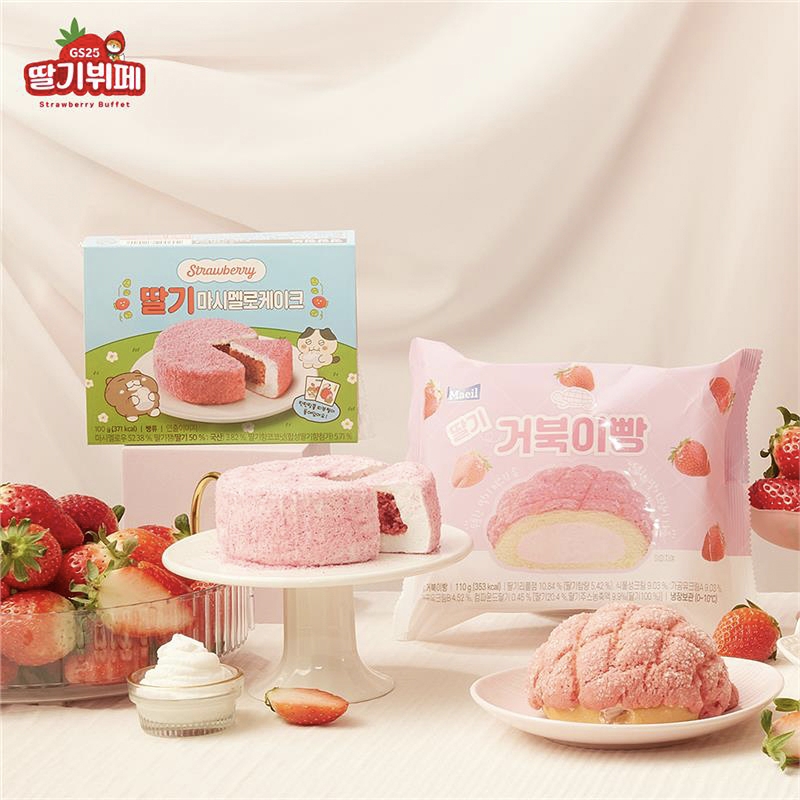 이상 기온으로 최근 몇 년 새 금딸기 현상이 이어지고 있지만, GS25는 슈퍼마켓 GS더프레시와 MD 조직 통합 운영 시스템을 통해 안정적으로 딸기 수급을 유지해오고 있다. 과일 전문 MD가 산지에 있는 딸기 농가와 사전 구매 계약을 체결해 우수한 당도 딸기를 선제적으로 확보해 전개하고 있는 것이다. 샌드위치, 케이크, 마카롱, 떡, 빵 등 다양한 딸기 디저트 상품도 운영한다. ▲버니공쥬 딸기뚱카롱 ▲버니공쥬 딸기생크림떡 ▲틴틴팅클 딸기마시멜로케익 ▲틴틴팅클 딸기샌드위치 ▲딸기거북이빵 등이다.