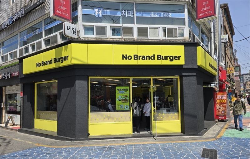 실제로 신규 가맹모델이 적용된 첫 매장인 노브랜드 버거 건대점은 전통시장과 다세대주택 등이 밀집된 상권에 자리 잡았다. 특별한 로고 없이 ‘노 브랜드 버거(No Brand Burger)’만 적힌 간판은 단순해 보였지만, 기존 브랜드 색상보다 밝은 노란색을 사용해 산뜻한 느낌을 줬다. 소형 매장인 만큼 주방 공간도 효율화했다. 주방 공간은 5평으로 줄었지만 생산 설비는 동일하게 적용해 조리 동선을 최소화했다. 주방 공간을 줄인 덕분에 매장 내 고객 공간은 넓어졌다. 좌석 크기도 조정하면서 평당 좌석수를 기존 매장 대비 35% 늘렸다.