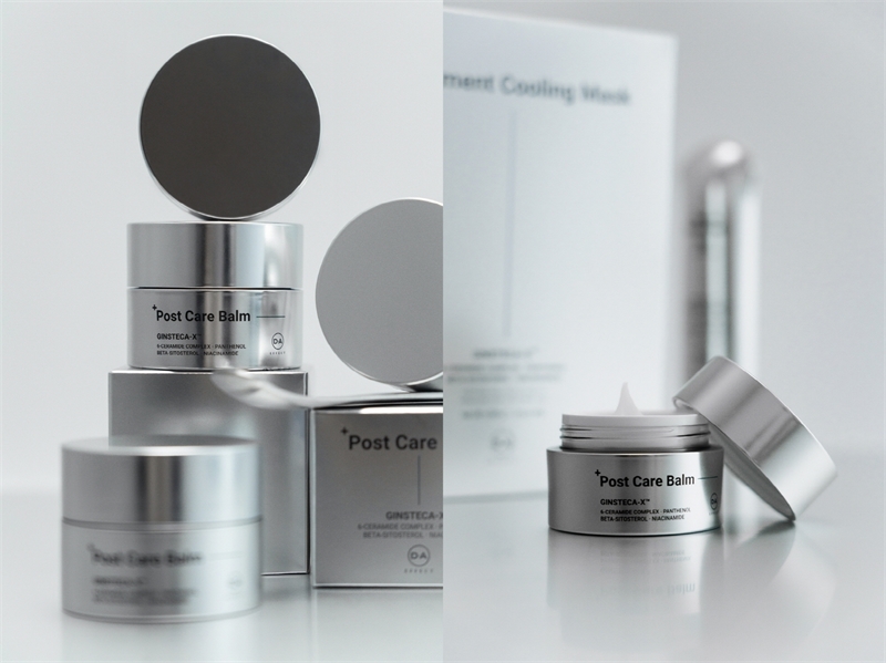 디에이이펙트는 현재 피부 재생에 특화된 신개념 재생코팅밤 ‘포스트케어 밤’, 피부 자극 걱정을 덜어낸 자외선 차단제 ‘하이드로 선스크린’, 진정 효과를 담은 마스크팩 ‘트리트먼트 쿨링 마스크’ 3종을 선보이고 있다. 디에이이펙트 제품은 재생을 돕는 TECA(테카)에 인삼 유래 엑소좀을 결합한 독자성분 ‘GINSTECA-X™’가 함유돼 피부의 빠른 회복을 돕는다. '포스트케어 밤’은 빠른 진정과 피부 재건에 탁월한 고기능성 스킨 부스터로 부드러운 멜팅밤 제형이 각질을 잠재우고 체온에 녹아 형성되는 보습 코팅막이 유효 성분을 피부 깊숙이 전달한다.