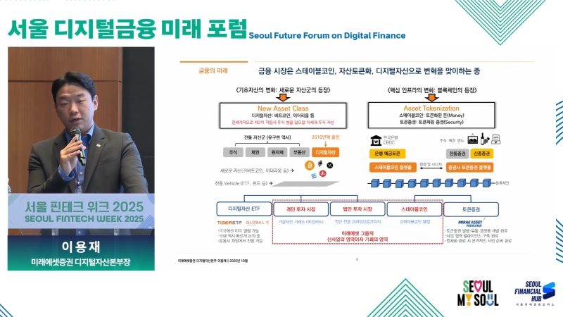 (발표에 나서는 이용재 미래에셋증권 디지털자산본부장 모습, 사진=서울시 유튜브 갈무리)