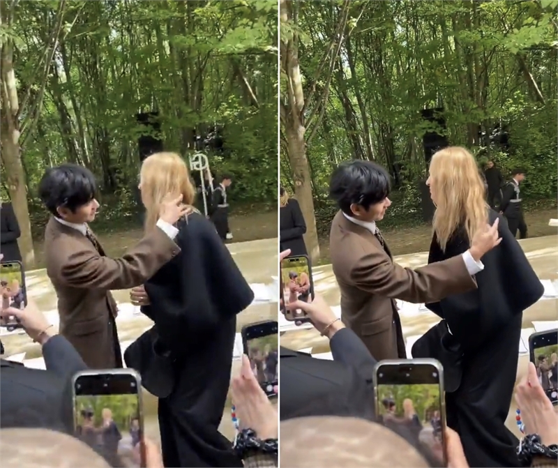 보그 프랑스는 뷔가 멀리서 점처럼 보이는 수많은 팬들을 발견하고, 기뻐하면서 손을 흔들고 인사를 하는 영상을 공개해 감동을 안겼다. WWD는 “뷔는 브라운 블레이저와 레오파드 무늬의 타이를 착용했는데, 가을의 따스한 색감을 표현했으며 지난번 패션쇼보다 더 격식을 갖춘 룩이다”고 뷔의 패션을 설명했다.