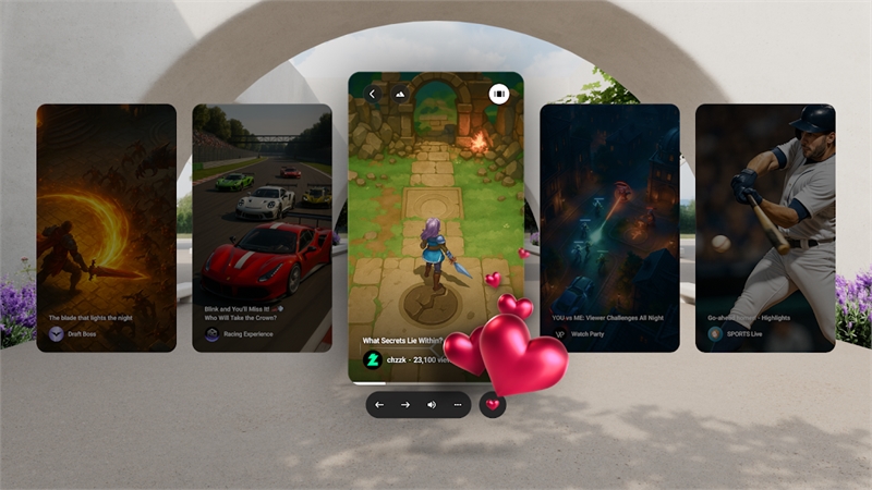 '치지직 XR'은 기존 치지직에서 볼 수 있는 라이브 방송·영상을 시청할 수 있는 앱이다. 헤드셋을 장착하면 원하는 방송을 탐색하는 '멀티뷰' 기능을 사용할 수 있고, 네이버의 숏폼 서비스 '클립'도 가로로 넘기며 볼 수 있다.