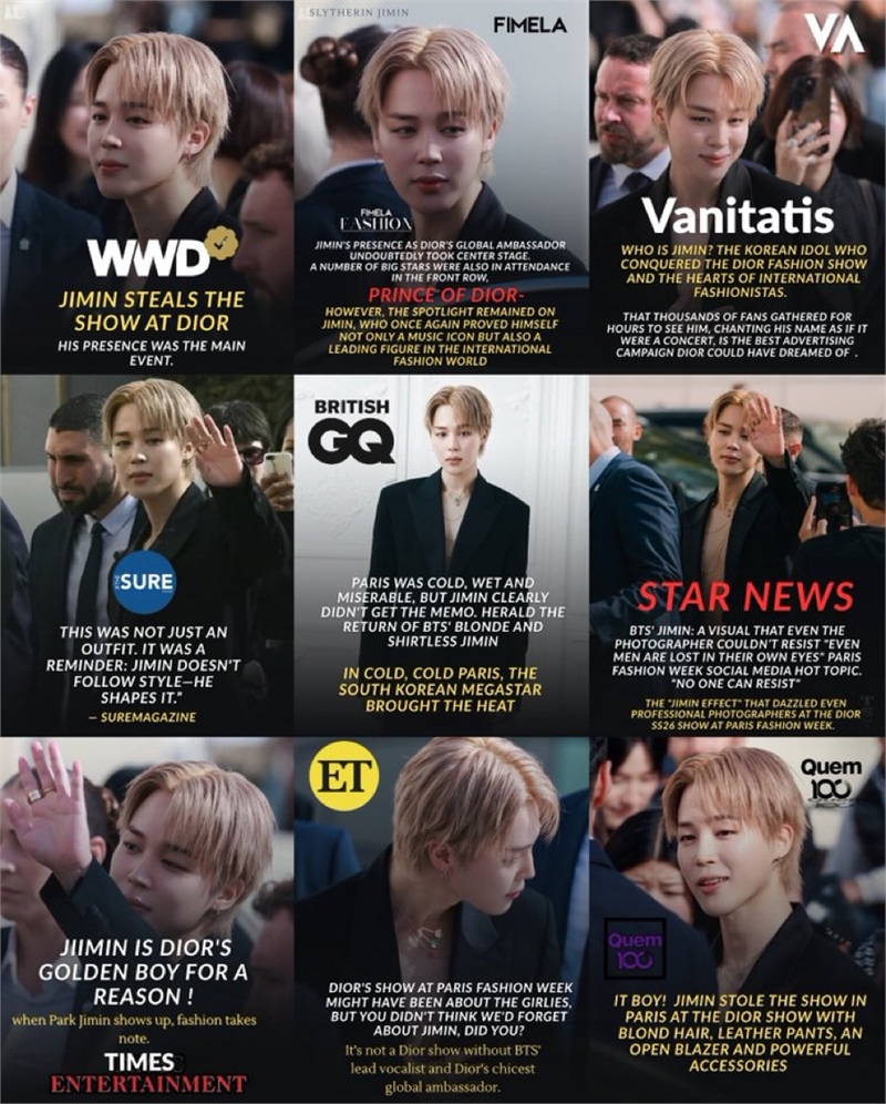 특히 10월 1일 디올 쇼 당일 지민이 등장하자 파리 현지 매체를 비롯해 유럽과 미국 주요 언론이 일제히 “지민이 쇼의 앞자리에서 빛났다”고 보도하며 그의 사진을 대대적으로 게재했으며 이 날 언급량이 최고점을 찍었다.
