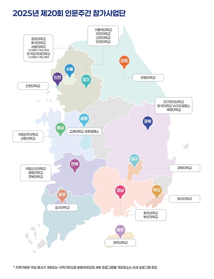 최은희 인재정책실장은 “올해 인문주간 행사가 인문학으로 사람과 지역을 잇고, 공동체와의 연대와 공감의 힘을 되살리는 시간이 되길 기대한다”라고 밝혔다.