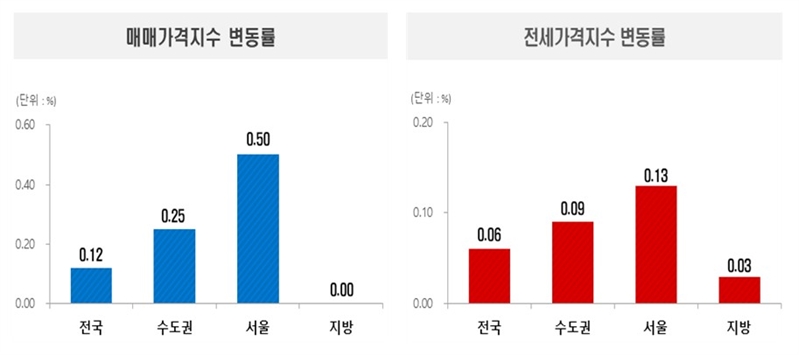 전국 및 수도권, 서울 집값 변동률 (자료=한국부동산원)