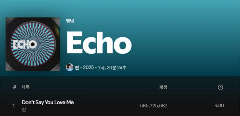 방탄소년단(BTS) 진의 솔로곡 'Don't Say You Love Me'(돈 세이 유 러브 미)가 2025년 전 세계 스포티파이에서 가장 많이 스트리밍된 K팝 노래에 올랐다.