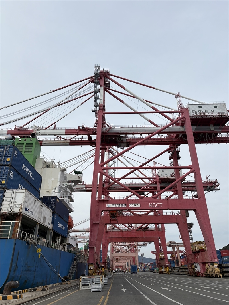 우리나라 수출입 화물의 77%가 이곳을 통한다. 올해 3분기에도 609만TEU를 처리해 전년 대비 0.8% 증가세를 보였다. 다만 증가율은 2분기(3.1%)보다 둔화됐다. 미국의 관세 강화에 대비한 조기선적이 마무리된 영향이다. 수출입 물량은 268만80000TEU로 0.1% 감소했지만, 캐나다·칠레 등으로 향하는 환적 물동량이 늘며 전체 증가세를 이어왔다.