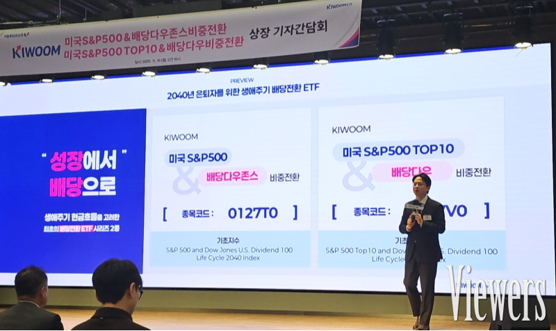 10일 키움자산운용은 여의도 TP타워에서 기자간담회를 열고 'KIWOOM 미국S&P500&배당다우존스비중전환'과 'KIWOOM 미국S&P500 TOP10&배당다우비중전환' ETF를 오는 11일 동시상장한다고 발표했다.