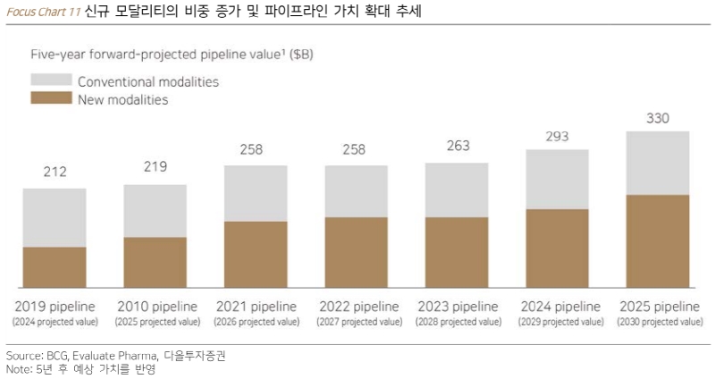 이어 그는 "올해 파이프라인 기준 전체 가치의 60%가 신규 모달리티에서 창출될 전망"이라며 "차세대 경쟁력을 확보하기 위해 기전 차별성이 명확한 혁신(first-in-class) 모달리티가 조기 투자 대상이 되고 있다"고 덧붙였다.