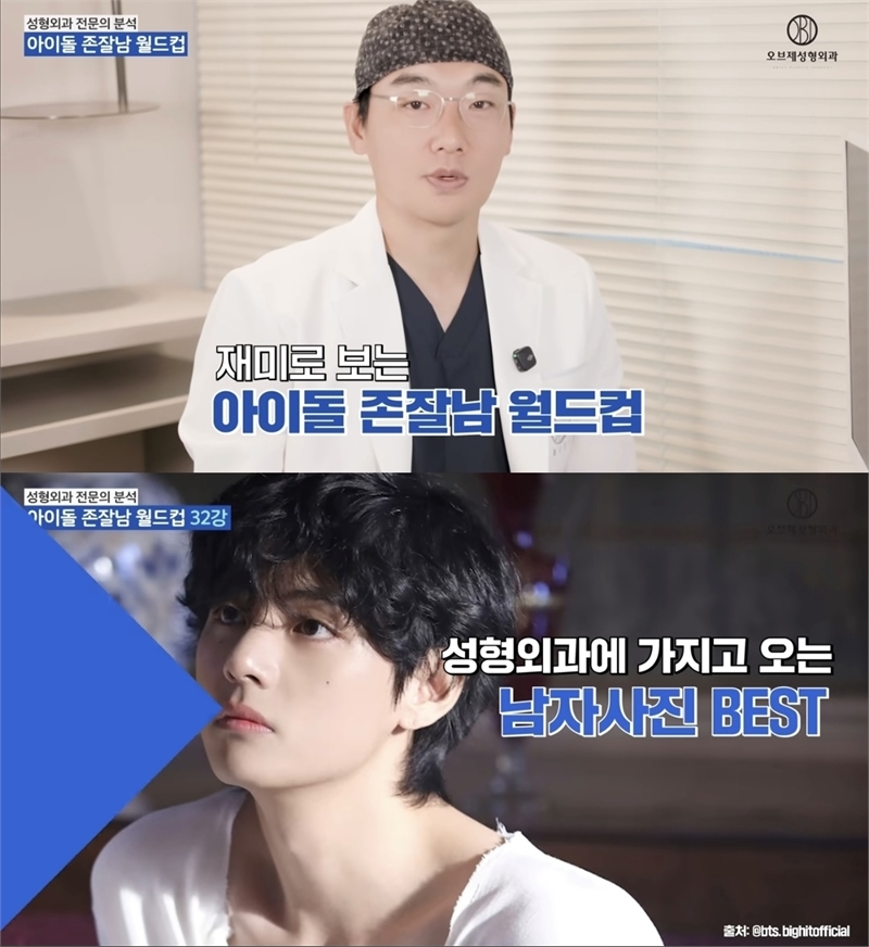 최근 성형외과 전문의 이경묵은 유튜브 채널에 “BTS, 라이즈, 차은우 다 모였다”라는 제목으로 K팝 비주얼을 대표하는 32명의 아이돌을 대상으로 이상형 월드컵을 진행했다. 전문의는 뷔를 최종 우승자로 선정하며 “뷔는 남자들이 봤을 때도 멋있다. 남자들이 성형상담을 왔을 때 가장 많이 들고 오는 사진은 압도적으로 뷔가 많다”라며 남자들이 가장 닮고 싶어 하는 워너비 스타라고 밝혔다.