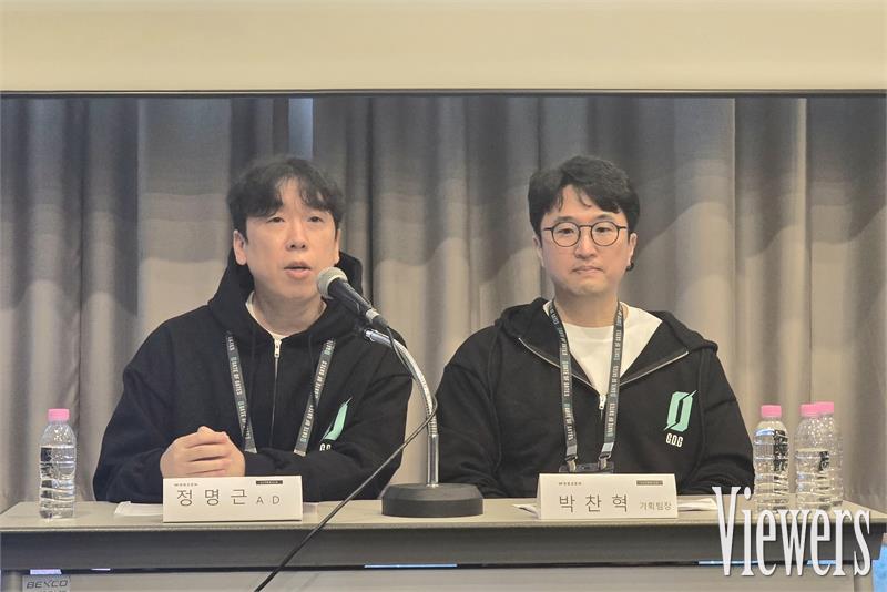 14일 웹젠은 '지스타 2025'가 열린 부산 벡스코 제1전시장에서 신작 '게이트 오브 게이츠'의 공동인터뷰를 진행했다. 이날 인터뷰에는 정명근 리트레일 아트디렉터, 박찬혁 기획팀장이 참석했다.