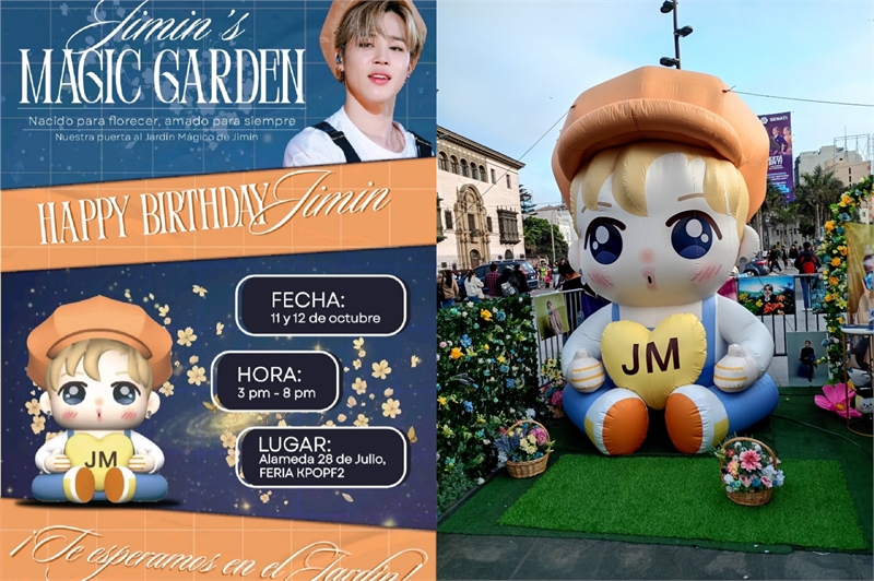 먼저 페루 리마의 Alameda에서는 현지시간 10월 11일과 12일에 'Jimin's Magic Garden' 이벤트를 진행했다. 귀여운 지민 벌룬인형이 등장해 팬들과 지역 주민의 이목을 사로잡았으며 LED 트럭 광고로 생일을 축하했다.