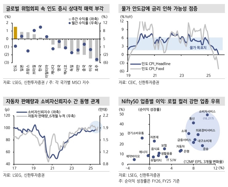 끝으로 인도와 미국 간 해빙 국면도 투자심리 개선에 일조할 것이란 전망이다. 양국 무역협상 타결이 임박한 가운데 인도 국영기업 HAL과 미국 GE 간 10억달러 규모 항공엔진 구매 계약과 인도의 미국산 LPG 수입 장기계약까지 체결됐다. 관세 불확실성 해소가 인도 주식시장으로의 외국인 자금 복귀에 긍정적으로 작용할 수 있다고 봤다.
