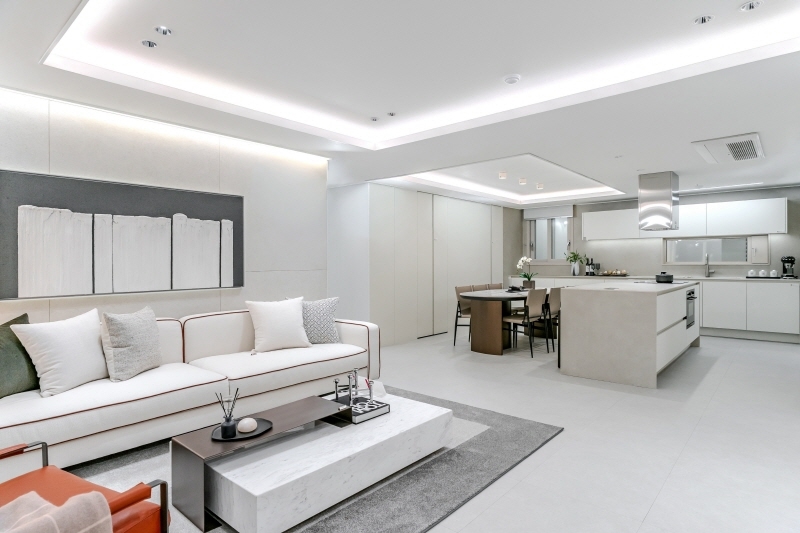 전용 104㎡와 127㎡로 구성된 복층형 펜트하우스는 ‘하늘 위 단독주택’을 콘셉트로 개별 공간 활용도를 높였다. 두 층으로 분리되는 구조 덕분에 공용 공간과 개인 공간을 명확히 분리할 수 있으며, 가변형 벽체를 적용해 서재·영화관·홈짐 등 다양한 용도로 활용 가능하다. 넓은 테라스는 홈카페·루프탑 등으로 활용할 수 있어 생활 만족도를 높인다는 평가다.