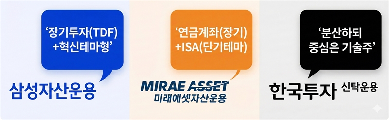 여기에 장기 성장성이 높은 혁신 테마 비중을 적절히 더하면 기대 수익률이 더 높아집니다. 최근 주목받는 생성형 AI와 로봇 테마가 대표적이며, ‘삼성글로벌ChatAI’, ‘삼성글로벌휴머노이드로봇 펀드’나 ‘Kodex 미국휴머노이드로봇’, ‘미국AI전력핵심인프라 ETF’와 같은 글로벌 성장형 상품은 연금 계좌 내에서 장기 수익을 기대할 수 있습니다. 다만 변동성이 큰 테마이므로 전체 자산 중 일부 비중만 편입하고 꾸준한 투자가 필요하다는 점은 유념해야 합니다.