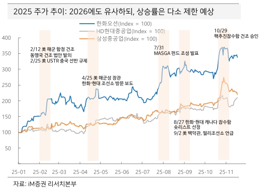 iM증권은 2일 보고서를 통해 실적과 미국 특수선 테마로 상승해온 조선업에 수주 개선이 더해지며 내년에도 상승 사이클이 지속될 것이라 봤다.