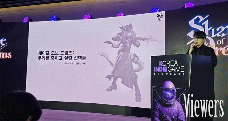 '코리아 인디게임 쇼케이스'는 2일 비즈데이와 3일~4일 퍼블릭데이로 나뉘어 총 3일간 운영된다. 먼저 비즈데이의 첫 순서로 리자드 스무디 심은섭 대표가 '우리를 죽이고 살린 선택들'을 주제로 인디게임 지원사업 성공사례를 소개했다.