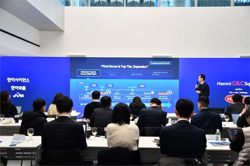 한미그룹은 지난 4일, 서울 송파구 방이동 본사 인근에 신축한 ‘한미 C&C 스퀘어’에서 주요 증권사 애널리스트 및 투자자 대상의 기업설명회 ‘Hanmi Vision Day’를 열고, 비만과 안티에이징, 디지털헬스케어, 로보틱스 등 4가지 핵심 영역 중심의 2030 성장 전략 로드맵을 발표했다.