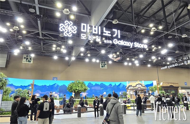 '마비노기 모바일'로 대한민국 게임대상을 탄 넥슨은 올해 지스타 대신 'AGF 2025'를 찾았다. 넥슨은 갤럭시 스토어와 협업해 게임 속 마을 '티르코네일'을 현실 공간에 구현했고, 관람객들이 게임의 세계관과 감성을 직접 체험할 수 있는 기회를 마련했다. 관람객들은 각각 학교, 목장, 식료품점, 낚시터 등 4개 구역에서 게임을 체험하고 포토 이벤트 등을 즐길 수 있다.