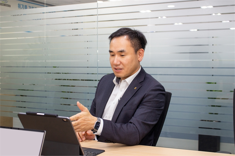 (지난 15일 오후 박진호 NH아문디자산운용 주식운용부문장이 뷰어스와 인터뷰하고 있다. 사진=NH아문디자산운용)