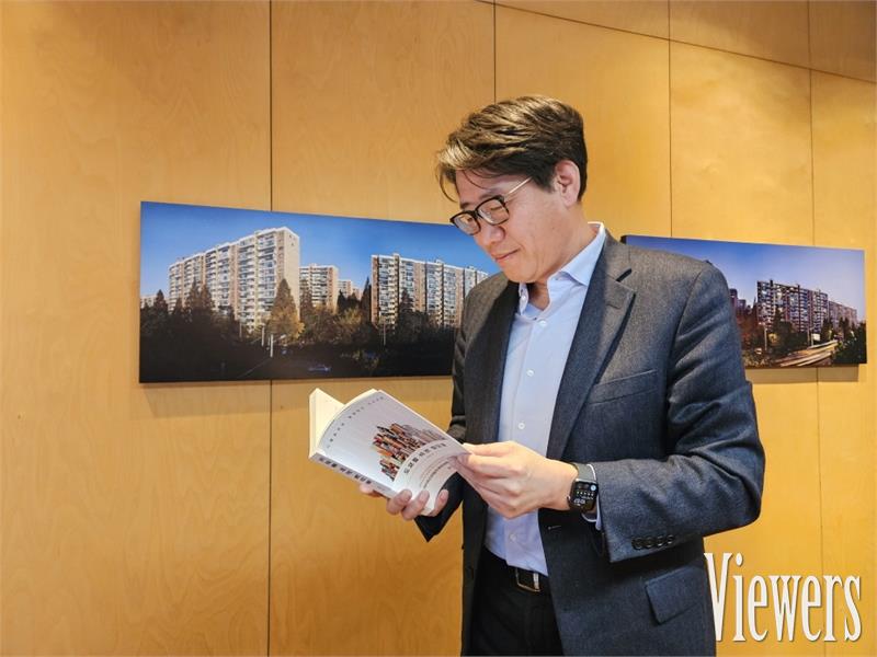 박희윤 본부장이 지난 16일 인터뷰에서 자신의 저서 '도쿄를 바꾼 빌딩들'에서도 강조한 "건물을 짓는 것보다 중요한 것은 그 안을 채우는 '타운 매니지먼트'"라며 이것이 대한민국 도시 개발의 새로운 기준이 돼야 한다고 역설했다. 저서를 살펴보고 있다. (사진=손기호 기자)
