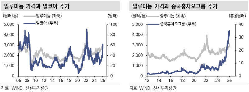 구리 대체제로 부각되는 알루미늄 가격이 공급 병목으로 인해 오버슈팅 할 것이란 전망이다. 신한투자증권은 알루미늄 생산비용 통제 우위에 있는 미국 알코아와 중국 홍차오그룹에 주목했다.