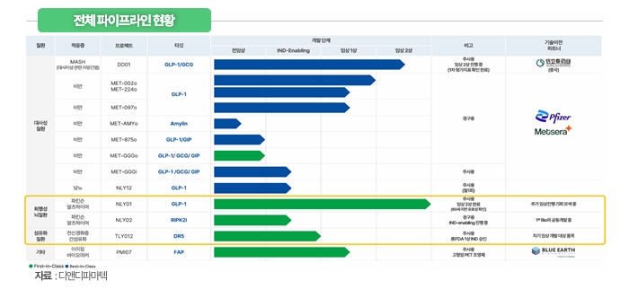 DD01 이후 국면을 어떻게 설계하느냐도 시장의 관심사다. 바이오 섹터에선 대형 L/O 직후 주가가 밀리는 '셀온(Sell-on)'이 반복돼 왔다. 리포트는 이런 현상이 단일 파이프라인 구조, 후속 파이프라인 성숙도 부족, 선급금 비중이 낮아 단기 실적 개선 효과가 제한되는 계약 구조가 맞물릴 때 강화된다고 짚었다. 디앤디파마텍은 "한 번의 기술이전으로 끝나지 않는다"는 논리를 내세워 셀온 우려를 낮추려 한다.