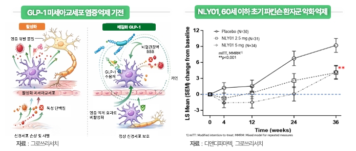 비(非)MASH 축도 병행한다. 자회사 Z-alpha는 α-입자 기반 방사성의약품(RPT) 분야에서 아스타틴 기반 파이프라인을 전면에 내세웠고, 이 시장은 임상 1상에서 '안전성'만 입증해도 L/O나 M&A가 빠르게 일어나는 특성이 있다고 봤다. NLY01은 파킨슨병 임상 2상에서 전체 유의성은 확보하지 못했지만 60세 미만 환자군에서 치료 신호가 확인됐다는 점을 바탕으로 다발성 경화증(MS)으로 적응증 전환을 추진한다. IPMSA 연구비 지원 과제로 선정돼 연구자 주도 임상(IIT) 형태로 진행되며, 회사는 임상시험약 제공 중심으로 비용 부담을 제한하는 구조를 택했다.