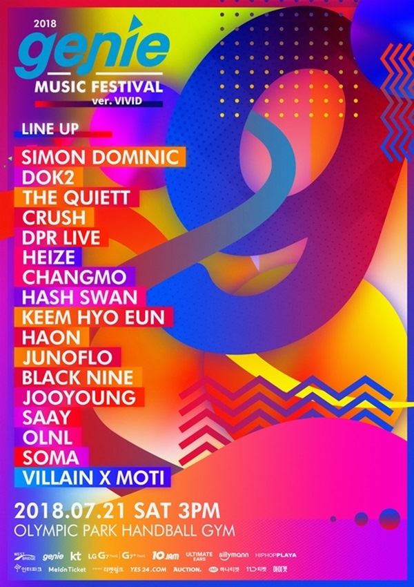 ‘지니 뮤직 페스티벌’은 지니뮤직에서 여는 첫 페스티벌로 2018년 음악 트랜드를 이끌어 가고 있는 최고의 힙합 아티스트를 엄선해 라인업을 구성했다. 사이먼 도미닉, 도끼, 더 콰이엇, 크러쉬, 헤이즈, 김하온, 창모, 주노플로 등 국내 힙합씬을 대표하는 아티스트들이 총출동할 예정이다.