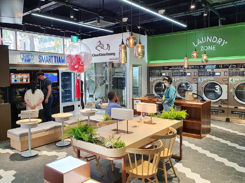 세탁하는 동안 무인 카페 ‘스마트 띠아모’에서 음료를 즐길 수도 있다. 반려동물과 함께 사는 고객이라면 프리미엄 반려 동물 스파 서비스 ‘펫스파룸’을 이용할 수 있다. 마련한 샤워 부스에서 반려동물을 씻기고 말려줄 수 있다. 집에서 반려동물을 목욕시킬 때와는 달리 뒤처리 수고를 덜 수 있어 편리하다.