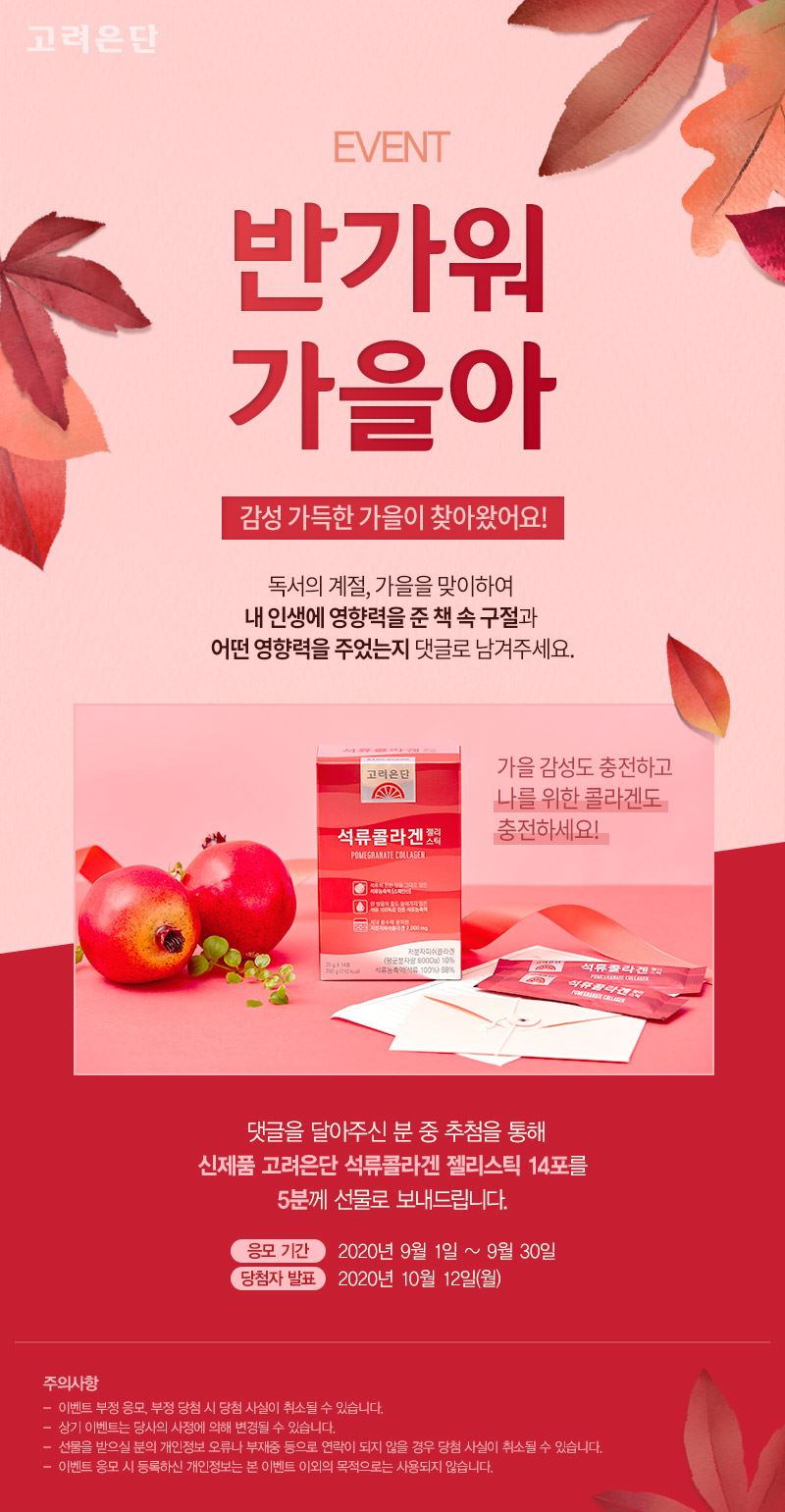 고려은단이 독서의 계절, 가을을 맞아 공식 홈페이지에서 ‘반가워 가을아’ 이벤트를 진행한다고 4일 밝혔다.