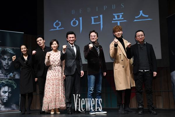 [뷰어스=이현지 기자] 11일 오후 서울 용산구 블루스퀘어에서 '오이디푸스'(제작: (주)샘컴퍼니, 프로듀서 : 김미혜) 제작발표회가 진행됐다. 이날 배우 정은혜-최수형-배해선-황정민-남명렬-박은석이 포즈를 취하고 있다. 한편 국민배우 황정민의 파격적인 변신으로 화제를 모은 '오이디푸스'는 고대 그리스 3대 비극 작가 소포클레스 원작 작품으로 서재형 연출과 새로운 창작진들로 구성하여 다양한 변화를 시도할 예정이다. 0 0 뷰어스 이현지 기자 summerhill84@daum.net 이현지 기자의 기사 더보기 저작권자 ⓒ뷰어스 무단전재 및 재배포 금지