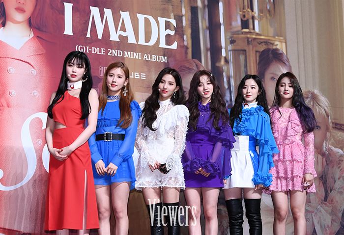 [뷰어스=이현지 기자] 26일 오후 서울 용산구 블루스퀘어 아이마켓홀에서 큐브엔터테인먼트 걸그룹 (여자)아이들 미니 2집 '아이 메이드(I made)'의 발매 기념 쇼케이스가 진행됐다.