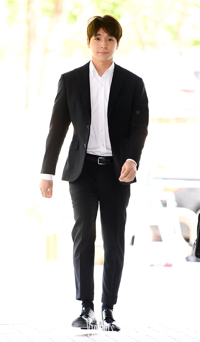 이날 최종훈이 서울지방법원에 출석하고 있다.