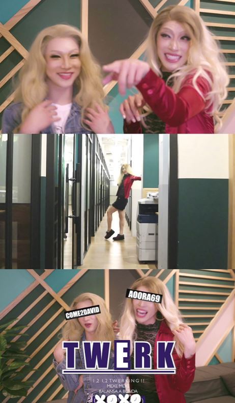 22일 오후 아우라 공식 유튜브를 통해 신곡 ‘TWERK’의 마지막 티저 영상이 공개됐다. 영상 속에는 아우라와 뷰티 크리에이터 정준구(Come2david)가 금발의 여성으로 변신, 파격적인 비주얼과 연기로 시선을 모았다.