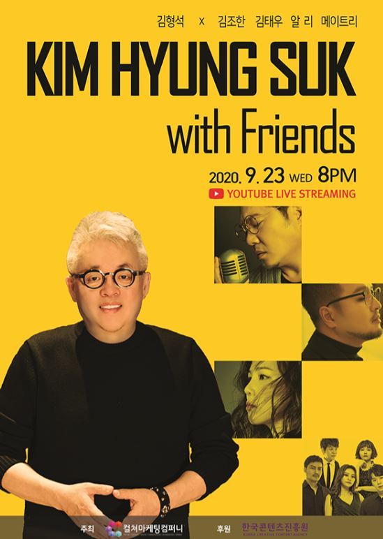 ‘김형석 with friends’는 한국콘텐츠진흥원 ‘K-Music 코로나19 극복 긴급 대중음악 지원사업’에 선정된 공연으로 비대면으로 펼쳐진다.