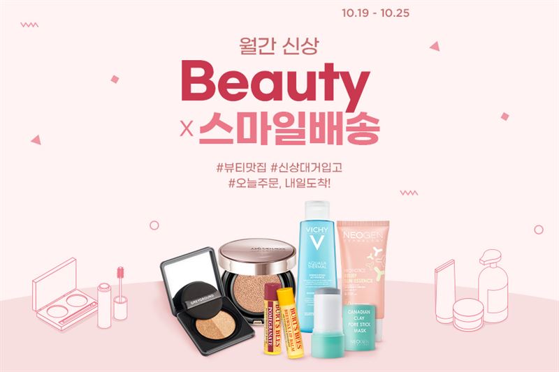 오늘 주문하면 내일 받는 G마켓, 옥션 ‘스마일배송’이 인기 뷰티 브랜드 15개 신규 입점을 기념해 오는 25일까지 ‘월간신상뷰티X스마일배송’ 프로모션을 진행한다고 19일 밝혔다.