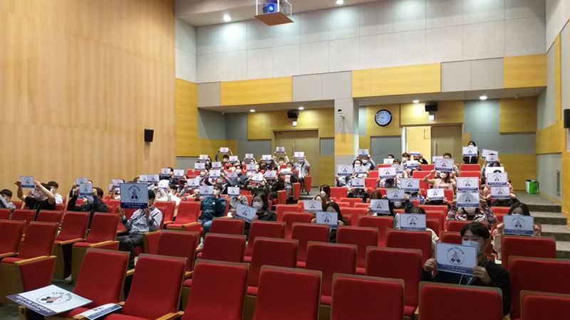판넬에는 두 손을 모아 기도하는 손 위에 비누거품이 더해져 손 씻기를 비롯한 개인위생관리를 통해 코로나19를 극복하고 예방하자는 의미를 담고 있는 로고가 담겨 있다. 또 ‘스테이 스트롱’이란 문구를 적어 코로나19를 함께 이겨내자는 의미를 담고 있다.