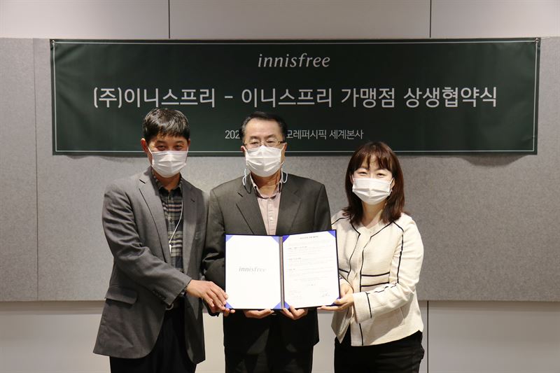 국감 출석 전날 이니스프리 등 주요 가맹점협의회와 상생 협약을 체결한 아모레퍼시픽(자료=아모레퍼시픽)