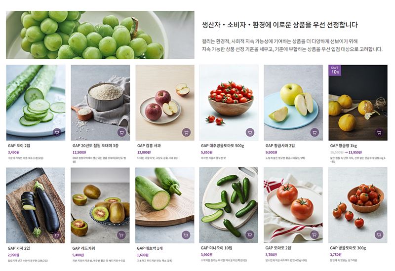 마켓컬리, ‘제6회 농산물우수관리 우수사례 경진대회’ 금상 수상_마켓컬리에서 판매 중인 GAP 상품(자료=마켓컬리)
