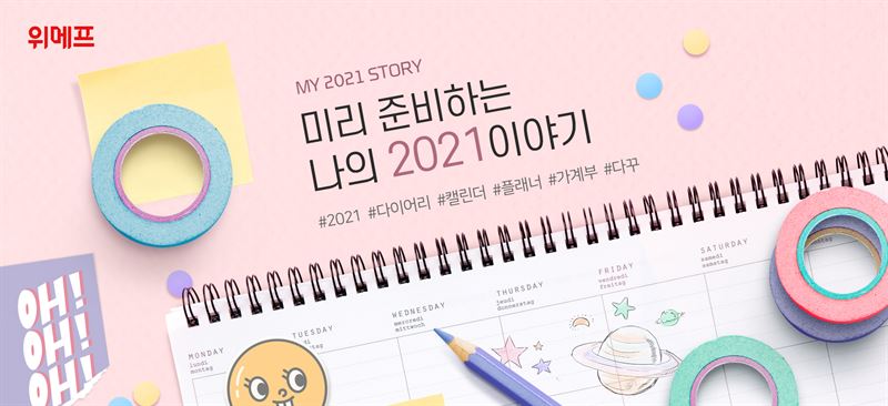 위메프는 ‘미리 준비하는 나의 2021 이야기’ 행사를 열고 다이어리, 캘린더 관련 용품들을 선보인다고 19일 밝혔다.