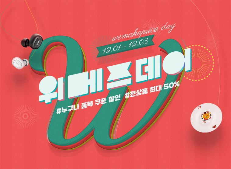 위메프는 내달 1~3일 3일간 ‘위메프데이’를 열고 겨울 시즌 상품과 인기 상품을 최대 50%까지 할인 판매한다고 30일 밝혔다.
