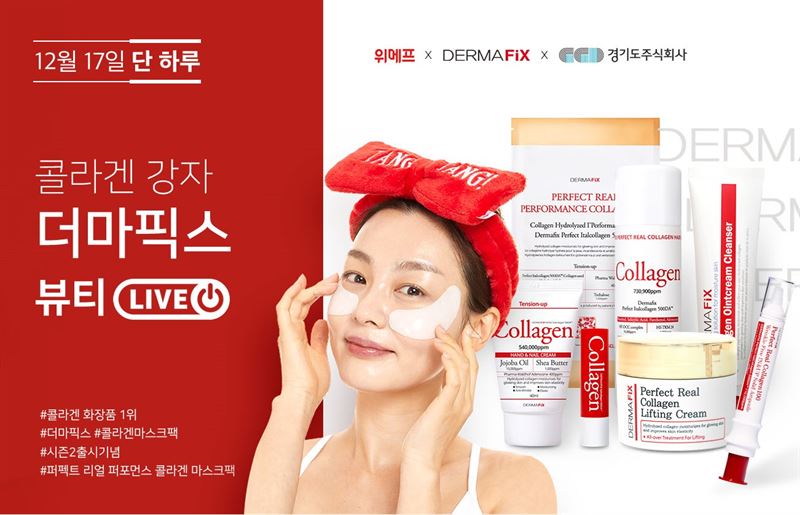 위메프는 콜라겐 전문 브랜드 더마픽스, 경기도주식회사와 협업을 통해 17일 저녁 8시부터 1시간 동안 단독 라이브 방송을 진행한다고 16일 밝혔다. 방송에는 쇼호스트 양희지와 김보영이 출연한다.
