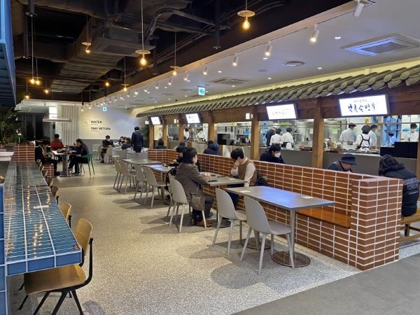 ‘풍경마루’는 ‘한우장터국밥(1만원)’ 외 7종, ‘강릉장칼국수’는 ‘원조장칼국수(9000원)’ 외 7종, ‘북촌순두부&솥밥’는 ‘해물순두부솥밥정식(9500원)’외 6종, ‘델리커리’는 ‘부채살스테이크 브라운카레(1만1900원)’외 7종, ‘북촌손만두’는 ‘북촌만둣국정식(9000원)’외 8종, ‘혜화동돈까스극장’은 ‘혜화동옛날돈까스정식(9900원)’외 7종, ‘미미한식탁’은 초밥과 깁밥 등 간편 음식을 제공한다.