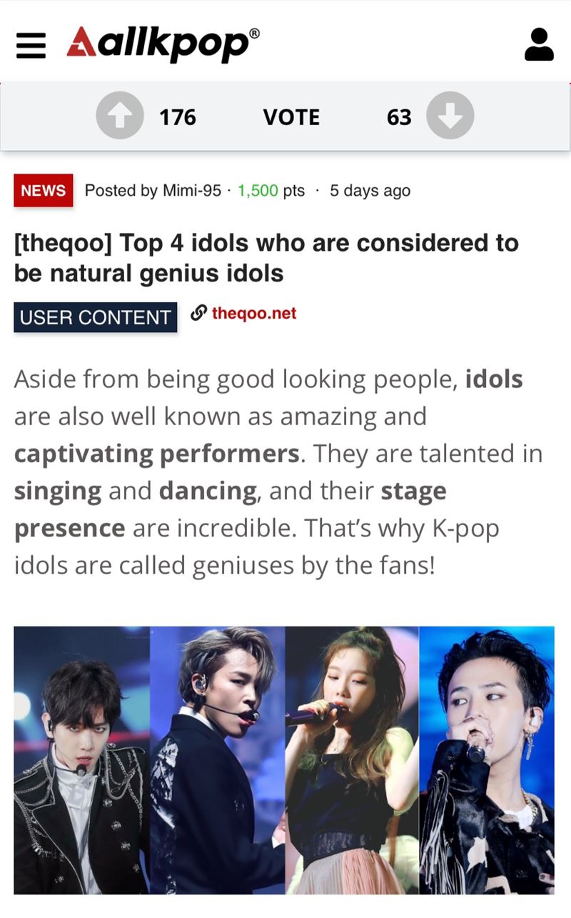 미국 한류 매체 올케이팝(Allkpop)과 아이돌 전문 뉴스 및 미디어 웹사이트 아이돌이슈(Idolissue)는 한국의 한 커뮤니티 플랫폼에서 화제를 모으고 있는 '타고난 천재 아이돌 4대 천왕'에 대해 보도했다.