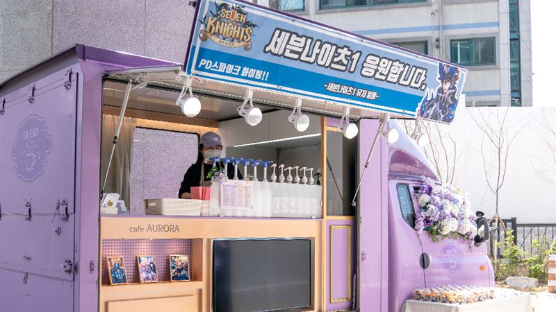 넷마블 ‘세븐나이츠’ 운영진을 향한 커피 트럭이 9일 오후 2시부터 4시까지 진행됐다. 이번 행사는 ‘세븐나이츠’ 이용자들이 CM스파이크(메인 PD)와 운영진에게 감사를 표하기 위한 차원. 이용자들의 자발적인 모금과 기획을 통해 마련됐다.
