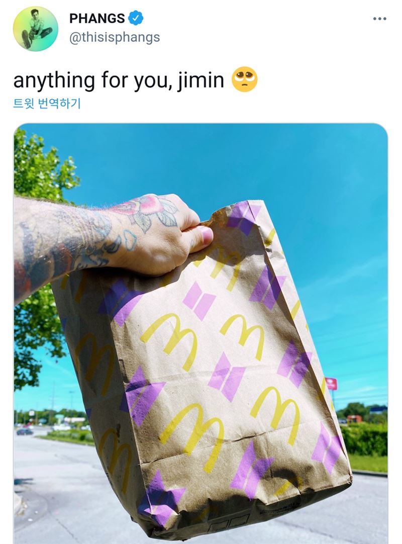 뮤지션 PHANGS와 아이하트라디오 PD인 JJ Ryan 또한 BTS와 맥도날드 로고가 새겨진 봉투 사진을 자신의 SNS에 게시하고 광고 속, 지민이 소개하는 스위트 칠리 소스를 가장 좋아하는 소스로 꼽아 지민의 파급력을 입증했다. 특히, PHANGS는 사진과 함께 'anything for you, jimin'라는 글로 글로벌 팬들의 뜨거운 호응을 받았다.